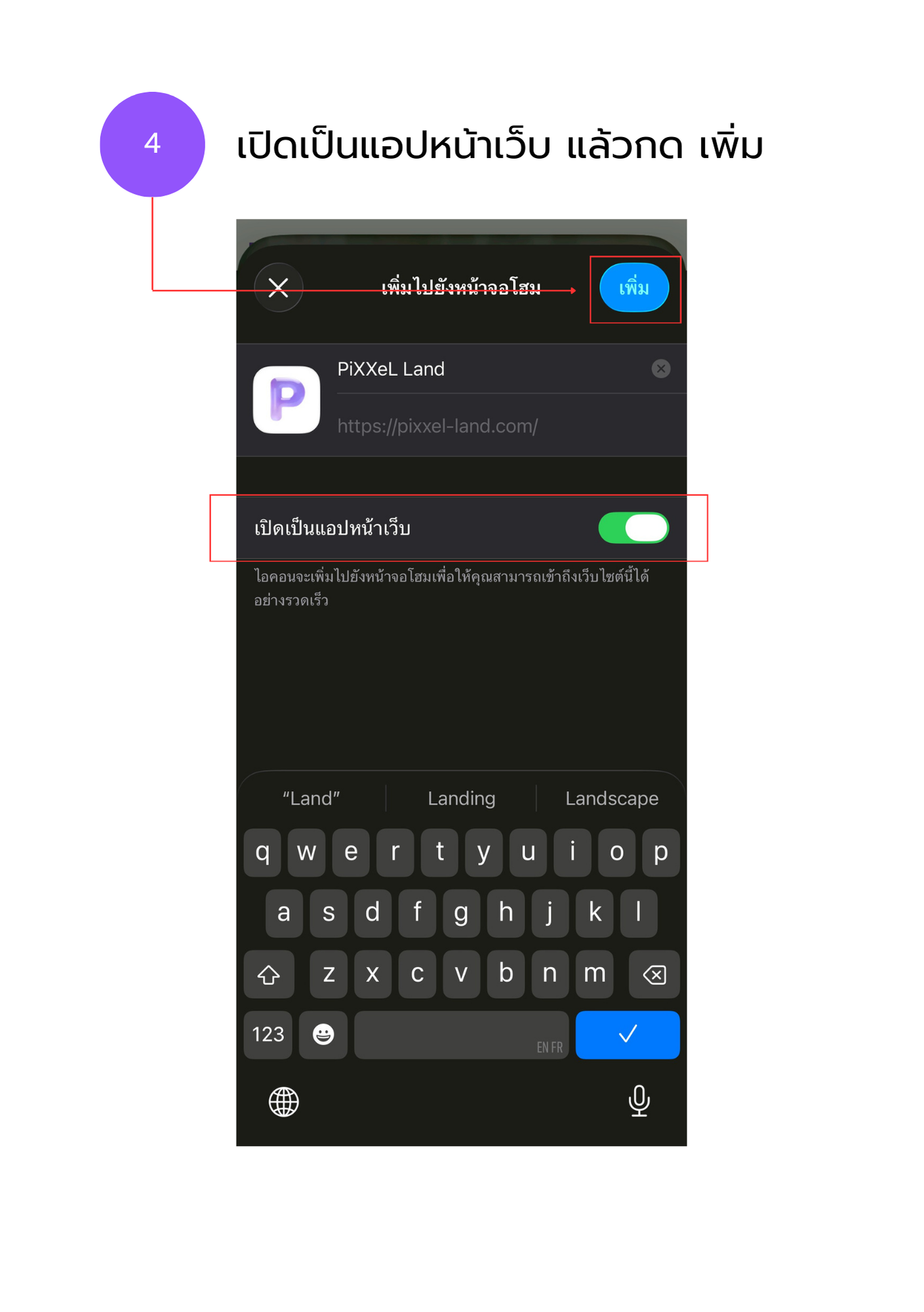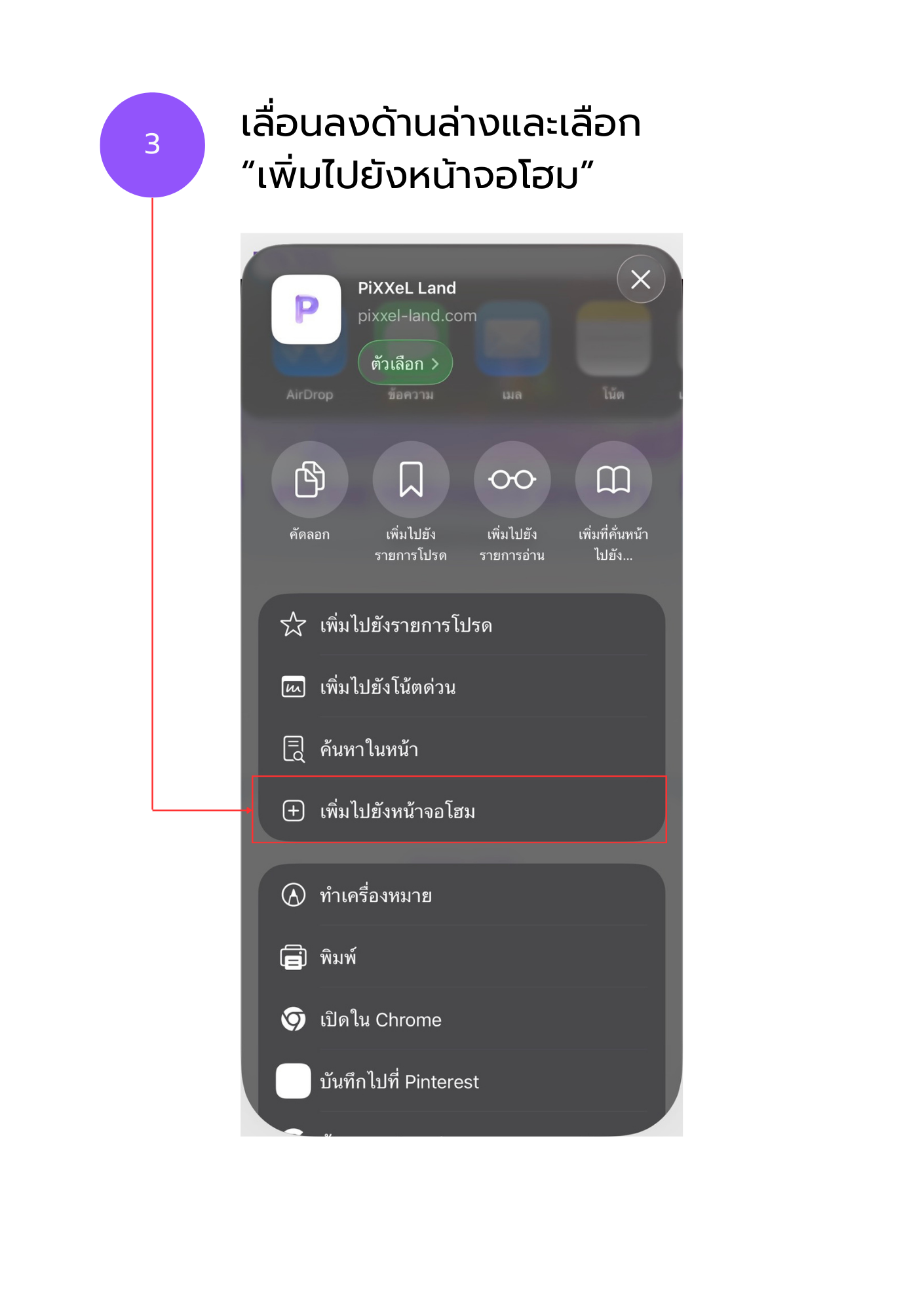 วิธีเพิ่ม PiXXeL Land ที่หน้าจอมือถือ